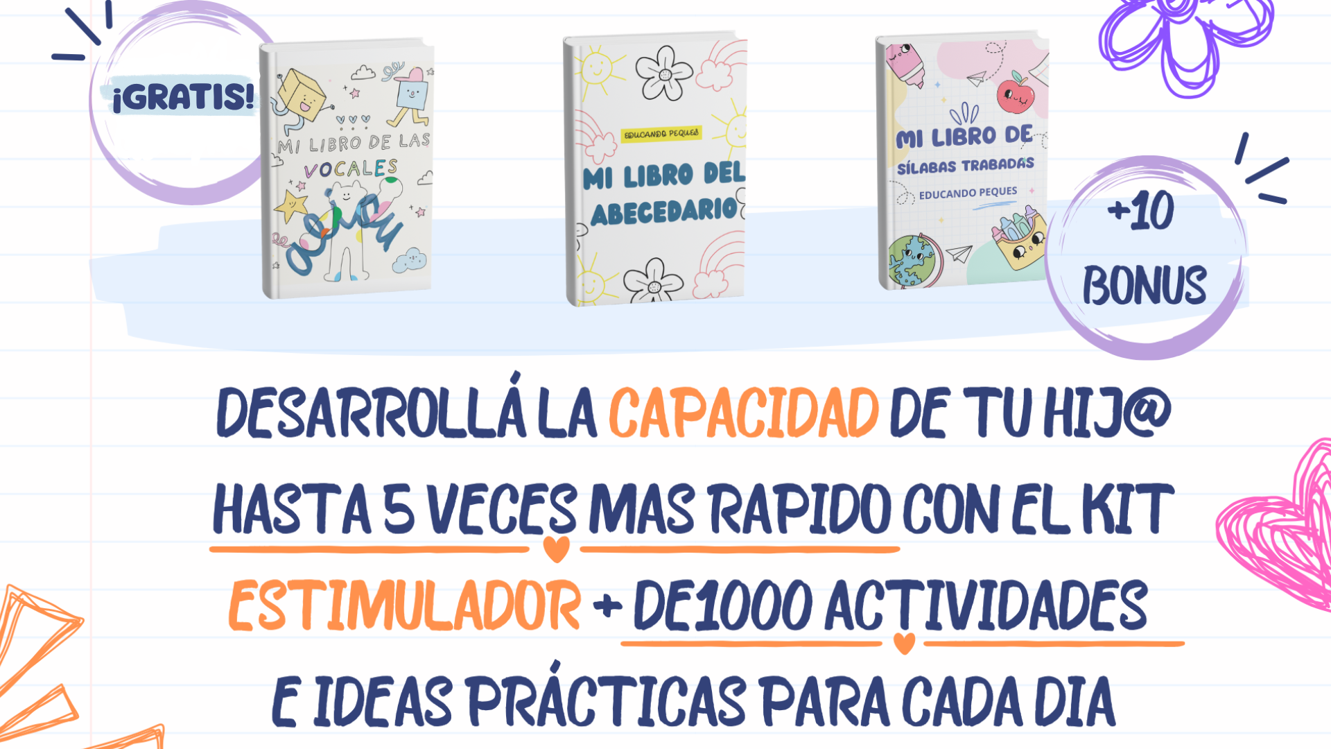 🔥 DESARROLLÁ LAS HABILIDADES DE TU HIJ@ HASTA 5 VECES MÁS RÁPIDO 🔥 Con el Libro de Educación Inicial + 10 BONUS GRATIS (¡Vocales, Abecedario, Sílabas Trabadas y más sorpresas educativas!)